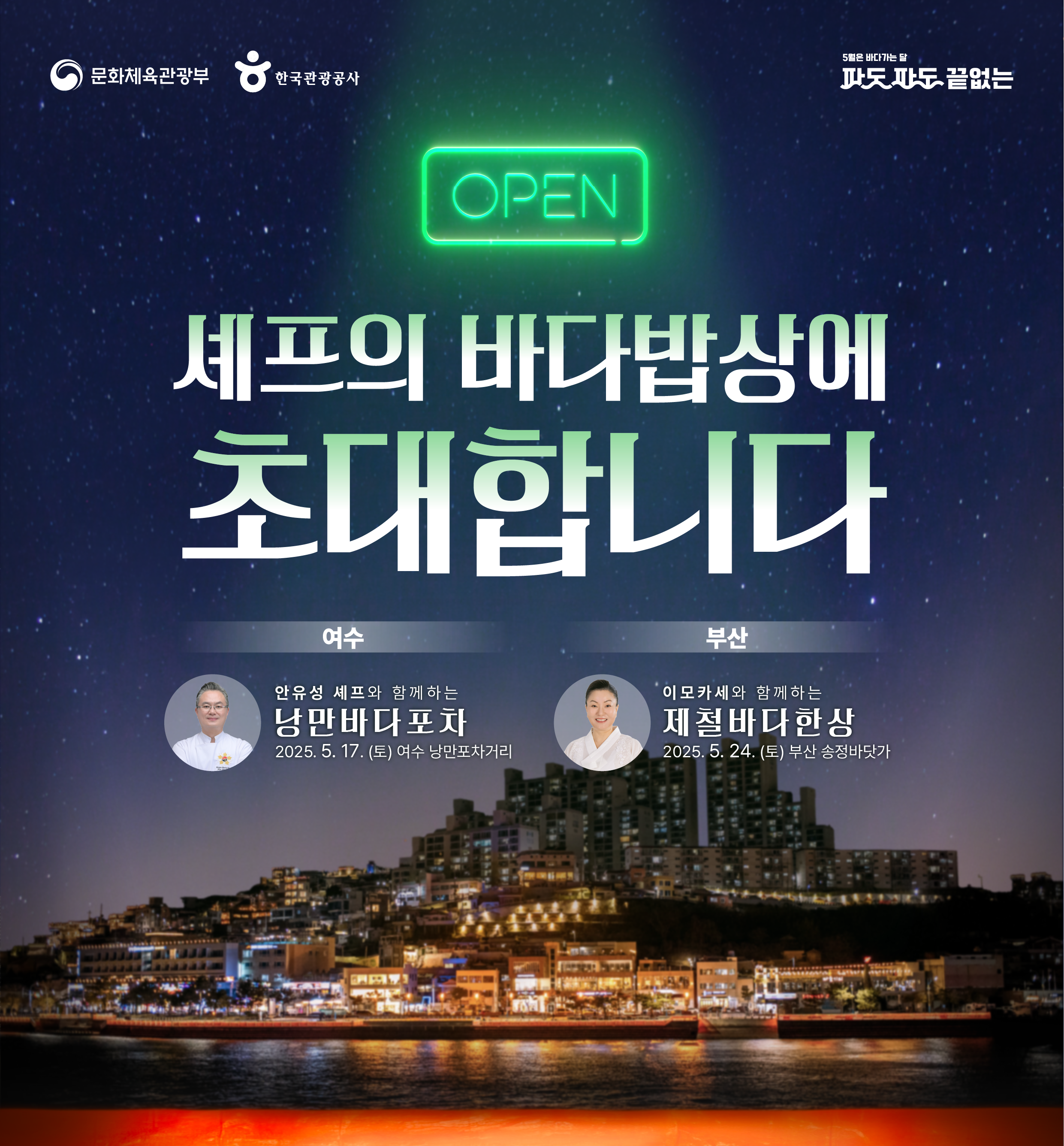 | 5월 17일(토) | 여수 | 안유성 셰프 | 50명 | 18:30~20:00 |