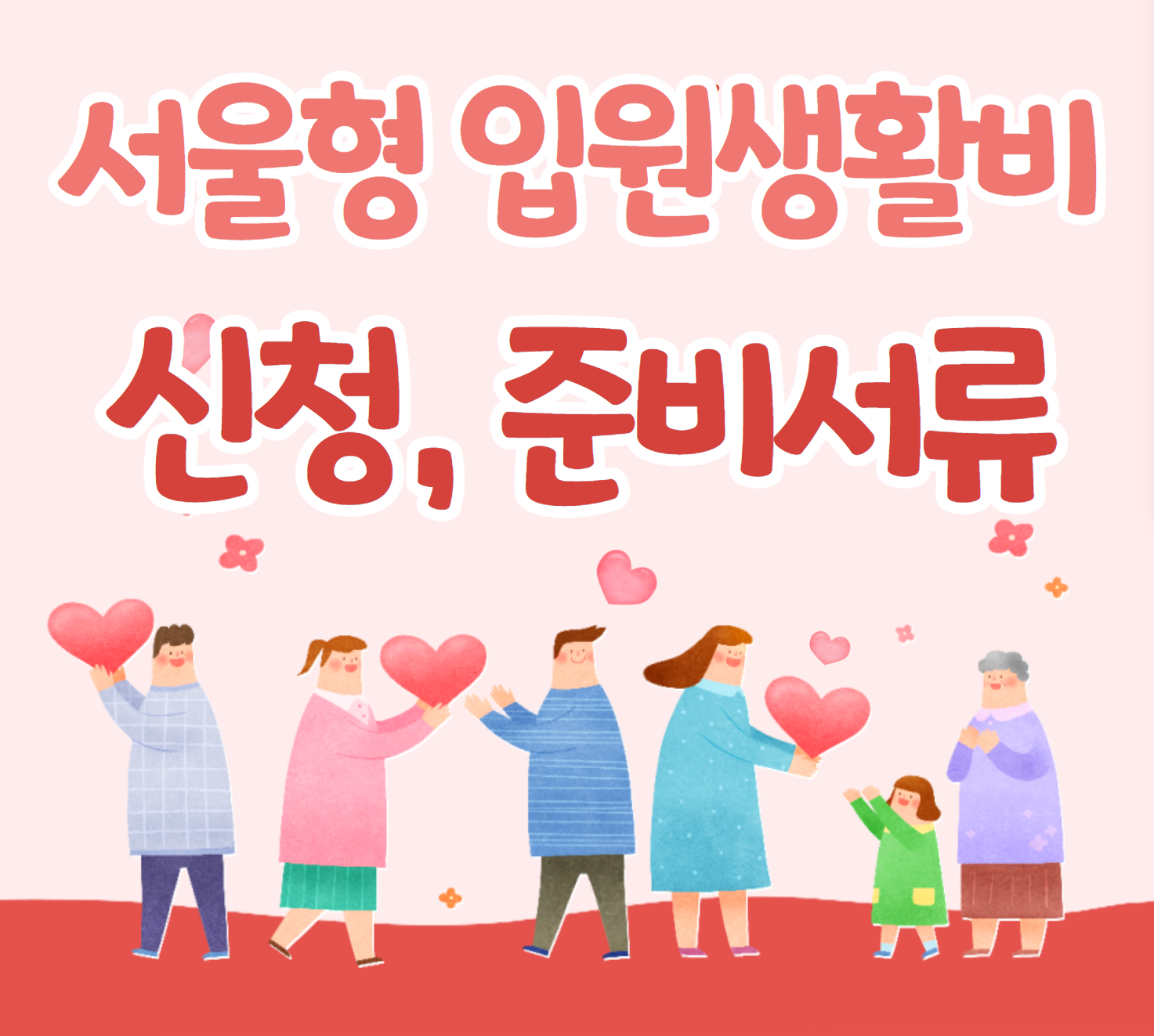 서울형 입원생활비 신청자격이 되시는 기초생활수급자, 차상위계층, 서울형 기초보장 수급자께서는 지역 동주민센터 를 방문하여 도움을 받으시거나 신청하셔서 생활비에 보탬이 되시길 바랍니다.
