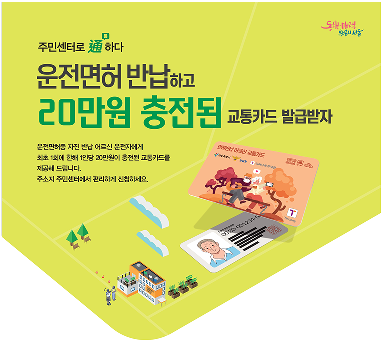 ✅ 서울시: 70세 이상 운전면허 반납 시 20만 원 교통카드 즉시 지급
