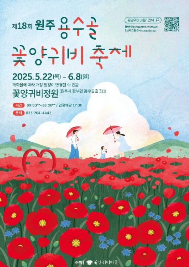 2025 원주용수골꽃양귀비축제는 오감이 즐거운 자연 속 힐링 공간입니다. 이번 주말, 마음을 환히 밝혀줄 붉은 꽃바다 속으로 떠나보세요!