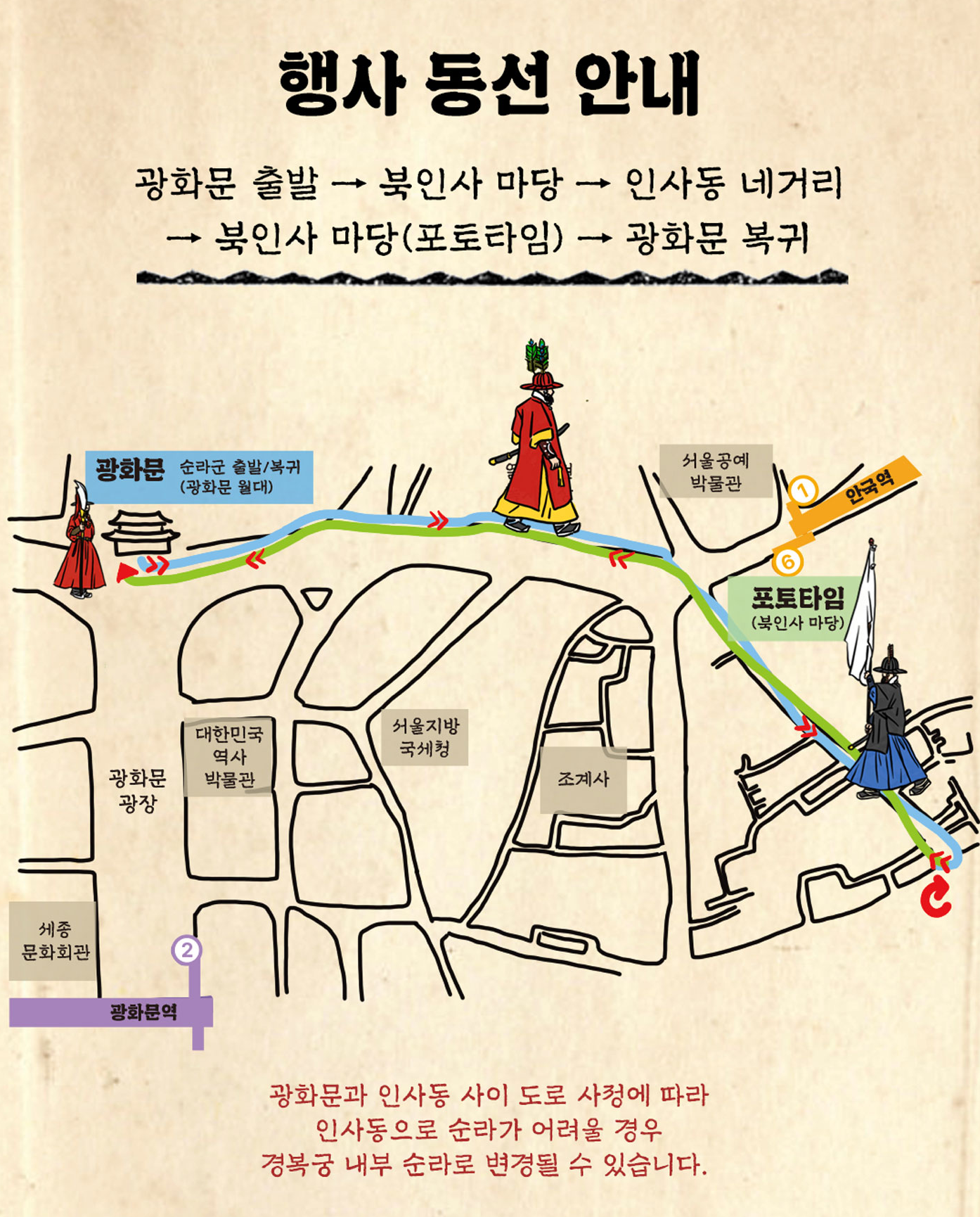 - 행진 경로: 경복궁 광화문 월대 → 인사동 문화의 거리