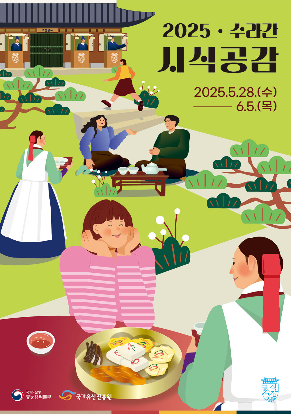 2025년 상반기 "수라간 시식공감"이 경복궁 소주방 권역에서 개최됩니다. 이 행사는 조선 시대 궁중 음식을 체험할 수 있는 특별한 행사로 궁중 음식과 전통 문화를 체험할 수 있으며, 경복궁 소주방 일원에서 개최됩니다.