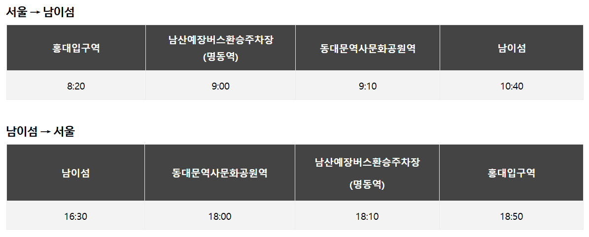 - 남이섬 셔틀버스 안내: