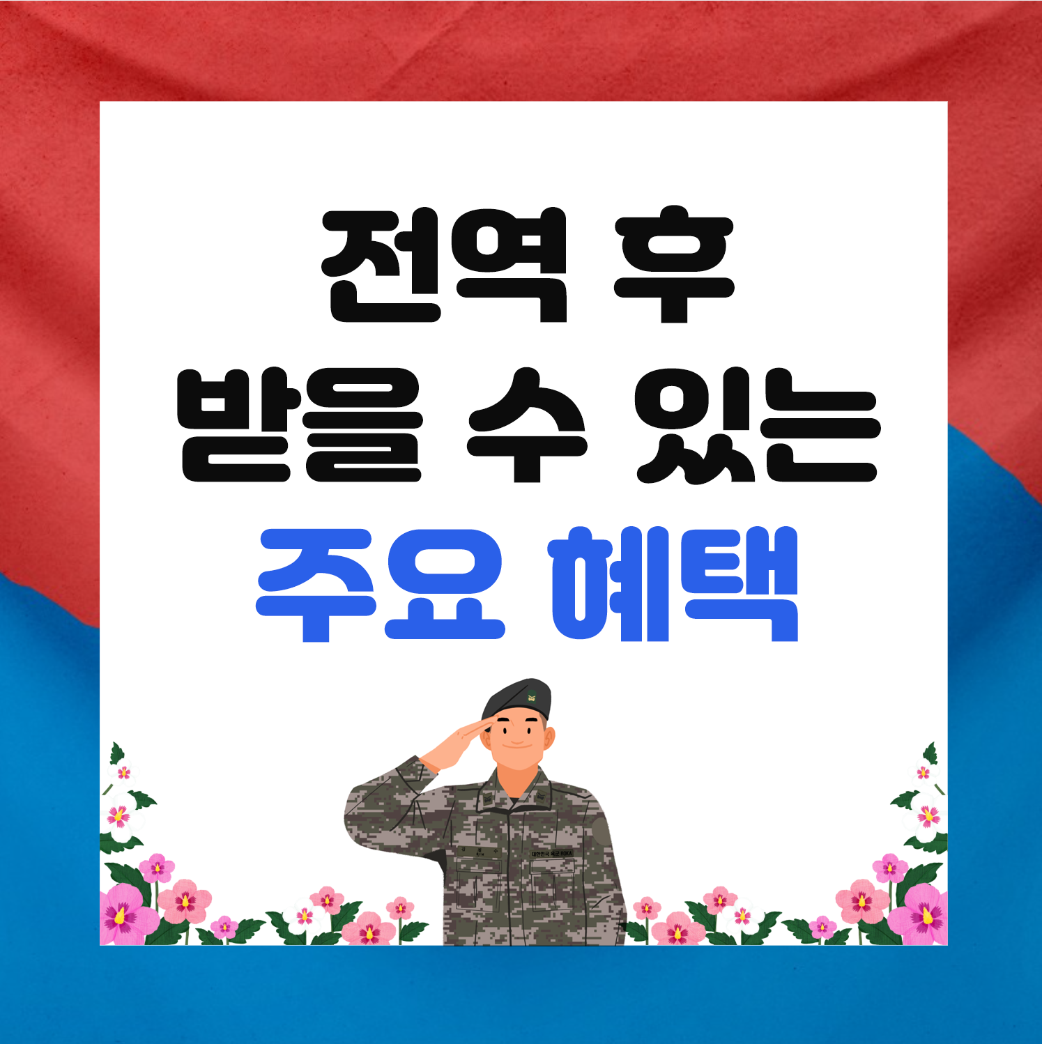 | 전역 직후 | 전역증 발급 → 국가보훈처 ‘제대군인 등록’ 병무청 ‘나라사랑 가게’ 할인 제휴 업체 확인 |
