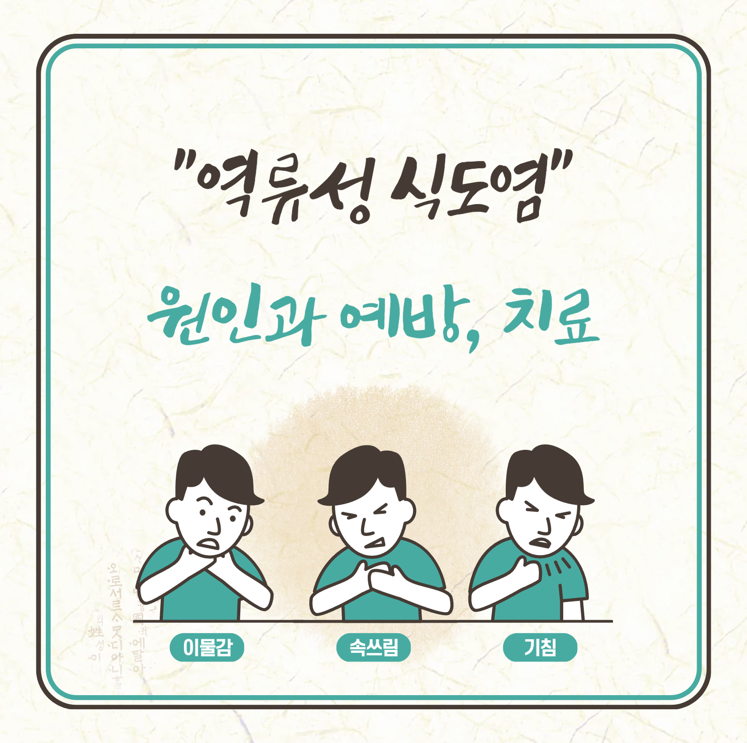 속이 타는 듯한 가슴 쓰림, 목 이물감, 트림이 잦다면 역류성 식도염을 의심해볼 수 있습니다. 역류성 식도염은 위의 산성 내용물이 식도로 역류하여 식도 점막에 염증을 일으키는 질환으로, 주원인은 생활습관 특히 식습관과 연관이 깊습니다. 아래에 역류성 식도염의 원인과 증상, 예방 및 치료법을 알아보겠습니다.