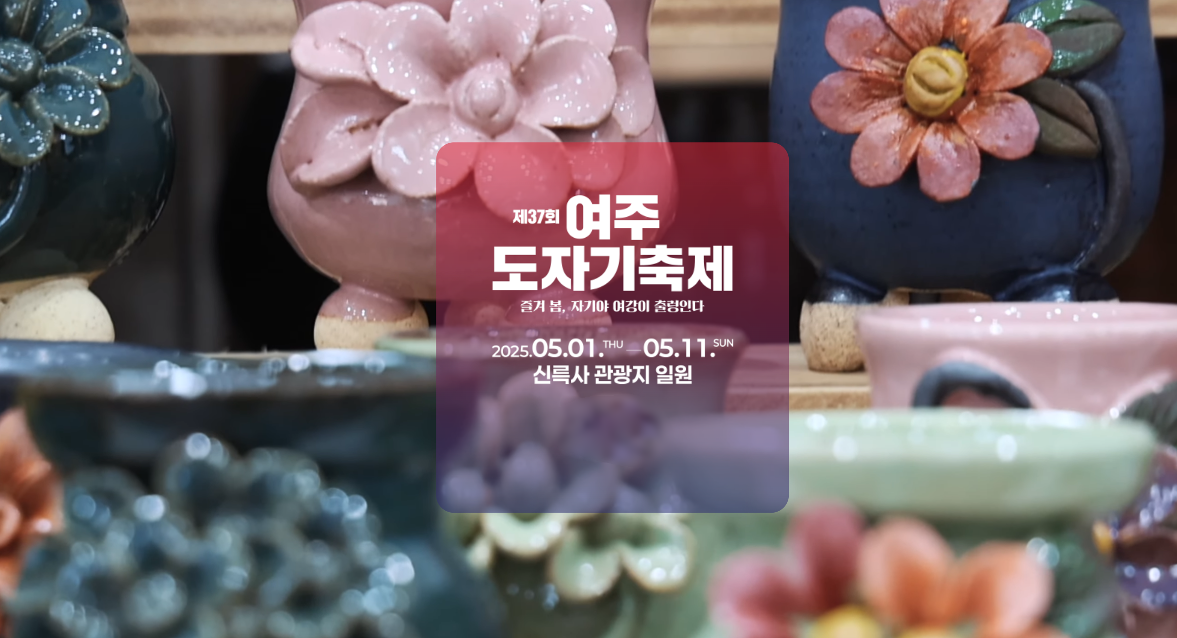 제37회 여주도자기축제가 2025년 5월 1일(목)부터 5월 11일(일)까지 11일간 경기도 여주시 신륵사 관광지 일원에서 개최됩니다.