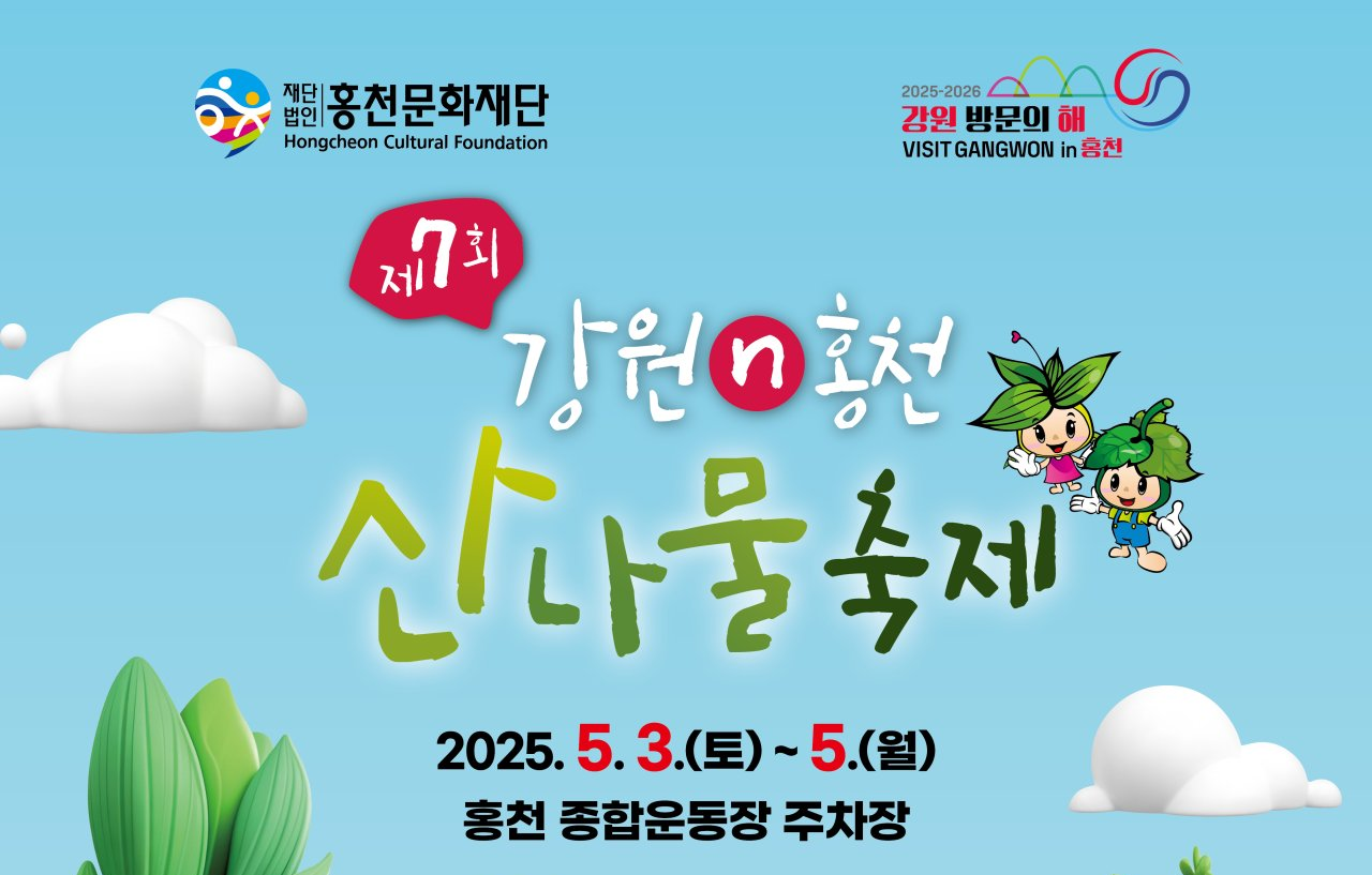강원도의 청정 자연에서 자란 산나물의 향연, '강원n 홍천 산나물축제'2025년 5월 3일부터 5일까지 홍천 종합운동장 주차장에서 개최됩니다. 이번 축제는 강원도 전역의 청정 산나물을 한자리에서 만나볼 수 있는 기회로, 무료로 개방됩니다.
